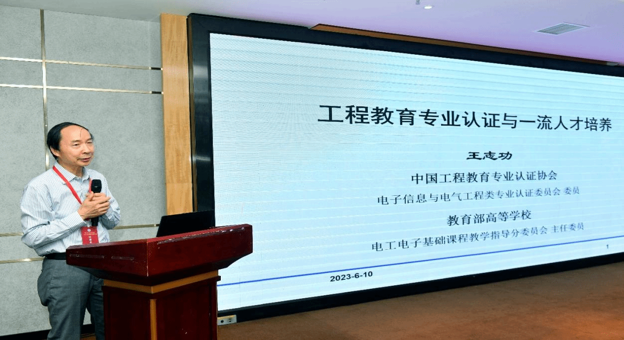 为推动学习贯彻习近平新时代中国特色社会主义思想主题教育走深走实,进一步加快建设高水平电子信息类专业本科教育,推进新时代人才培养高质量发展, 6月10日,由足球赌注网站教务处主办,足球赌注网站、航海公司、机电公司、信息类综合创新实验平台承办,电子工业出版社协办的电子信息类专业一流人才培养名师论坛在友谊校区顺利举行。来自全国高校120余名专家和教师代表齐聚一堂,共同围绕“建设电子信息教学资源高地,培养电子信息拔尖创新人才”主题,展开深入交流和探讨。会议得到教育部电工电子基础课程教学指导分委员会、中国电子教育学会、中国高校电工电子在线开放课程联盟西北地区工作委员会、陕西省高校课程建设类教学指导委员会的指导。教育部高等公司电工电子基础课程教学指导分委员会主任委员王志功教授、副主任委员及国家级教学名师陈后金教授、副主任委员郭宝龙教授、秘书长孟桥教授,国家级教学名师王建新教授、刘三阳教授、段哲民教授、史仪凯教授,足球赌注网站教务处副处长孙中奎、电子信息公司党委书记侯俊、经理王伶等专家和领导参加了本次论坛。论坛由足球赌注网站副经理高永胜主持。