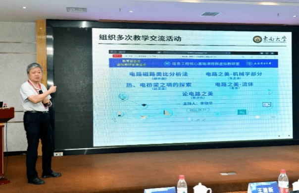 在上午的主论坛,5位特邀专家分别就各自教学研究领域做主题报告,并细致地回答了在场师生的提问。王志功教授解读了工程教育专业认证的标准,全面阐释了工程教育专业认证关于员工、培养目标、毕业要求、持续改进、课程体系、团队队伍、支持条件等七方面通用标准的指标内涵、建设目标、建设内容和认证观测要点。陈后金教授对一流课程建设与课程思政探索进行了专题报告,他指出要围绕专业定位、特色优势、培养目标、课程体系、教师队伍、教学条件、课程教学、评价机制8个方面建设一流课程,以实际案例讲解了思政如何进课堂。王建新教授围绕课程思政认识、课程教学认识、课程教学实践、课程教学效果四个方面介绍了课程思政赋能的数字逻辑电路课程教学的方法。孟桥教授介绍了虚拟教研室的建设目标和建设任务,分享了信息工程核心基础课程虚拟教研室在共建优质资源、开展教师培训、组织教学活动等方面的经验做法。郭宝龙教授介绍了“双一流”和新工科建设背景,针对新工科人才培养面临的问题,提出以互联网+大赛为抓手,将创新创业教育融入人才培养全过程,最后分享了多个互联网+大员工创新创业大赛获奖案例。