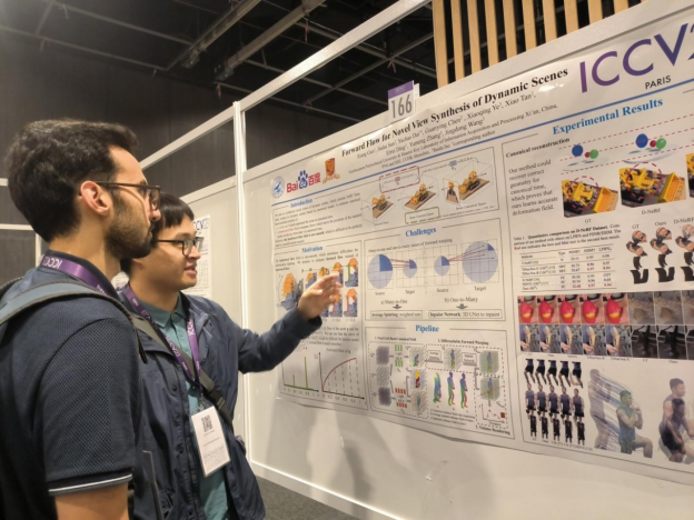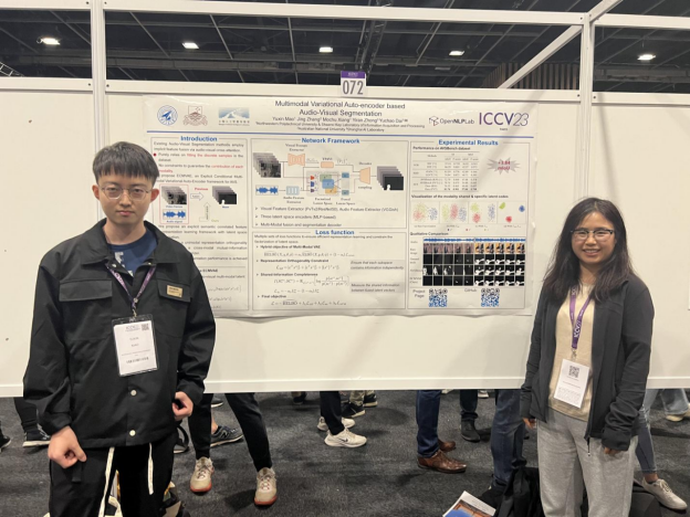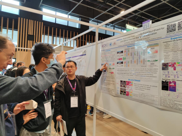 2023年10月2日至10月6日,IEEE国际计算机视觉大会(International Conference on Computer Vision,简称ICCV)在法国巴黎召开,足球赌注网站陕西省信息获取与处理重点实验室在戴玉超教授、何明一教授指导下共有五篇论文被大会接收,内容涉及动态场景新视角合成、深度图填充、事件相机二维光流三维场景流估计、多模态音视频分割和三维点云过分割等方向,其中实验室博士生郭相在会议中进行了口头报告(口头报告接受率为1.8%)。
