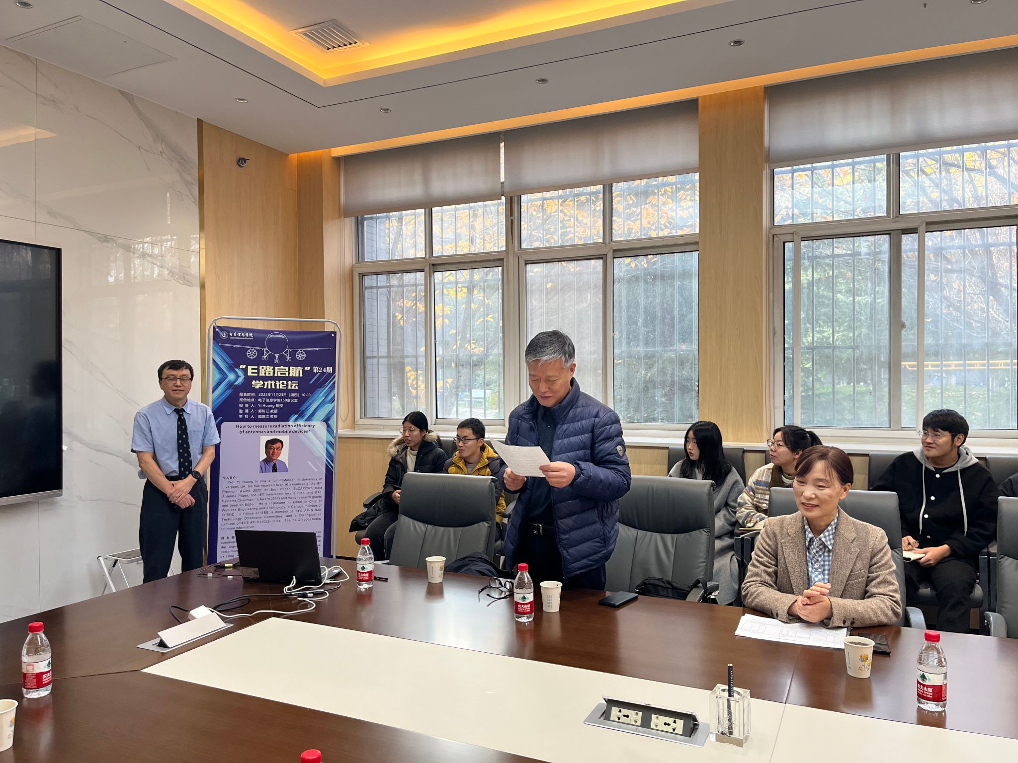 论坛伊始,郭陈江详细介绍了黄漪的个人履历及主要研究成果,表明天线和移动设备的辐射效率测量是他多年来的重点研究领域,也是目前最有技术挑战的落地应用场景之一,希望今天参会的师生能够借由本次论坛开拓科研视野、了解天线和移动设备的辐射效率的测试方法,将可借鉴点应用于自身科研中,寻求新突破。