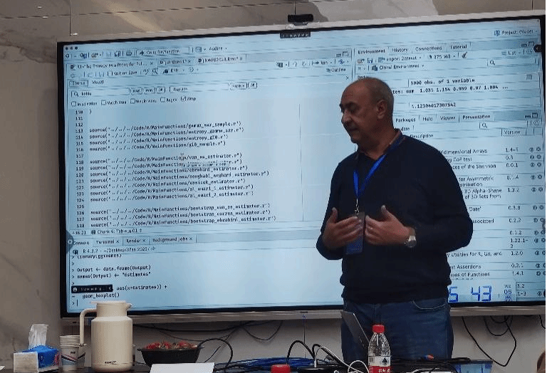 随后,Alejandro C. Frery教授做了题为《Reproducibility and Replicability - Concepts and Tools》的专题报告。首先,他阐述了一篇文章从构思到形成最终论文的整个流程和逻辑,说明了一篇学术论文的各个组成部分及其内容的写作方法,并由此出发,充分对比了会议论文和期刊论文的异同点,详细阐释了如何将一篇会议论文转化为期刊论文和该过程中应当注意的细节。接着,Alejandro C. Frery教授详细阐述了可复现性在当前论文发表中的重要性。随后,Alejandro C. Frery教授基于R编程语言和RStudio软件,给各位师生现场演示了如何使用R Markdown来进行科研图表绘制和论文的排版。报告结束后,参会师生就各自的科研情况与报告相关的部分展开了热烈的讨论,Alejandro C. Frery教授就师生的提问做了详细的回复。梅少辉教授就论文构思、英文论文写作技巧和论文写作软件应用等内容与Alejandro C. Frery教授展开了深入的研讨交流。最后,Alejandro C. Frery教授鼓励参会员工要多思考、多尝试、多交流,才能科研实践中锻炼自己的综合能力。