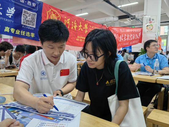 6月28日,侯俊来到杭州第二中学高考志愿填报咨询活动现场,为考生及家长答疑解惑,针对员工关心的录取分数线、专业就业前景等问题一一作答,现场气氛热烈。
