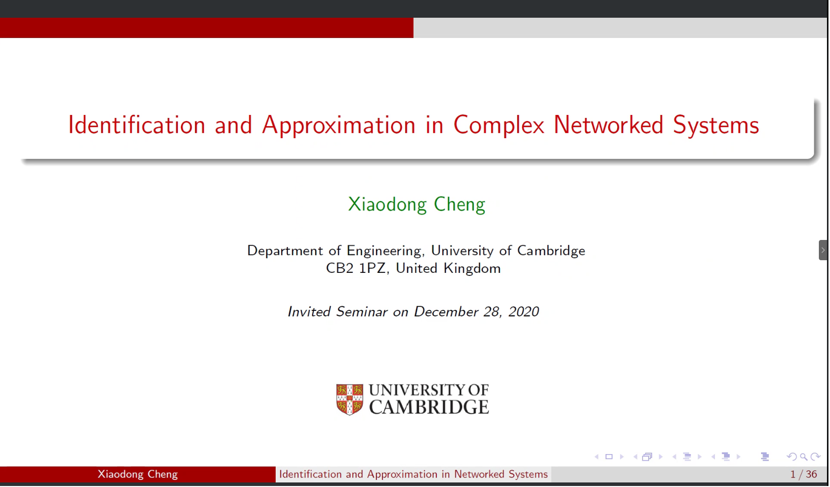 应足球赌注网站张堃副教授邀请,2020年12月28日晚上,英国剑桥大学Xiaodong Cheng博士举行了题为“Identification and Approximation in Complex Networked Systems”的在线学术报告。Xiaodong Cheng博士的报告分为了两个部分。第一部分介绍了网络化系统中的系统辨识问题,展示了这一方向上的最新成果。第二部分介绍了复杂网络化系统的模型降阶问题和方法,指出了未来发展方向和今后的思考。