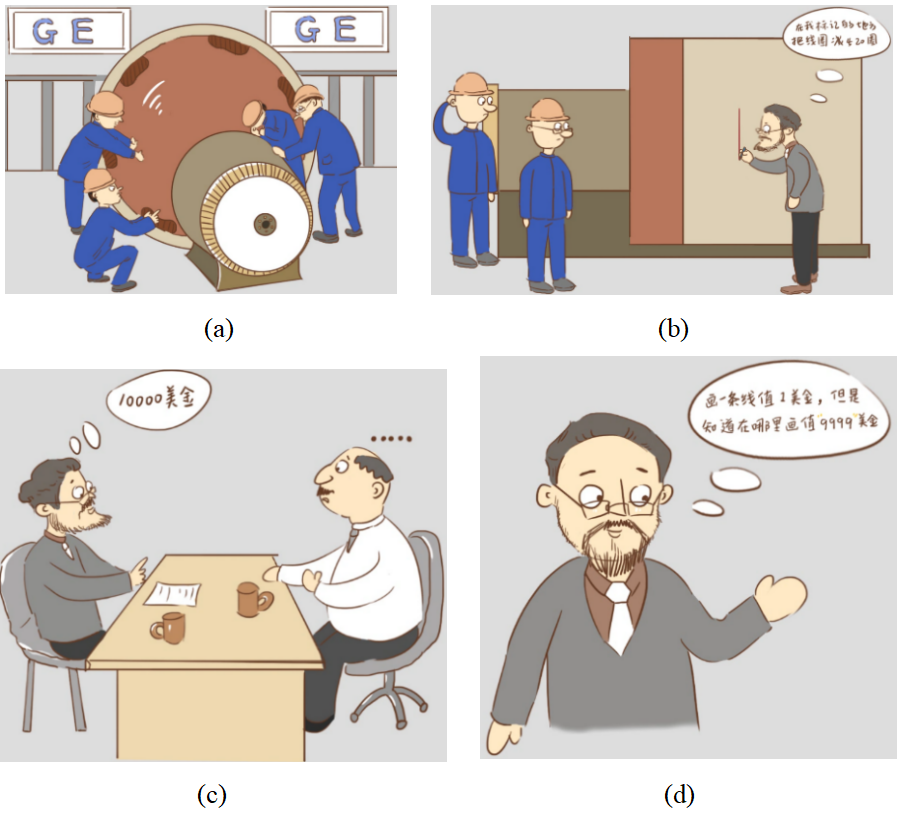 3. 名人故事:通过对提出相量法的科学家(斯泰因-梅茨)和其著名的“一线万金”的故事进行动画介绍,弘扬科学精神、工匠精神、奋斗精神,既活跃了课堂气氛,又潜移默化地告知员工“知识就是力量,知识就是财富,知识改变命运”,激发员工的学习兴趣。