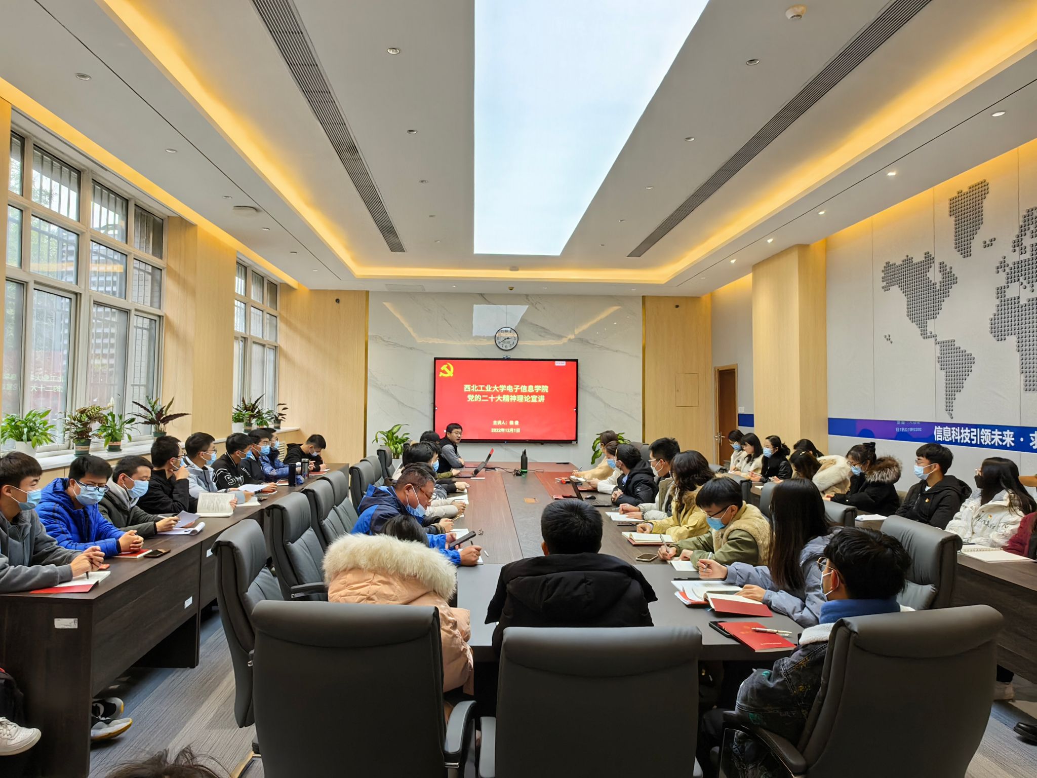 12月1日下午,足球赌注网站采取线上与线下相结合的形式召开师生党支部集体学习会,以习近平新时代中国特色社会主义思想为指引,深入学习贯彻党的二十大精神。会上,党委书记侯俊为所联系的院办支部、本科第二党支部、硕士第六党支部师生进行党的二十大精神理论宣讲。