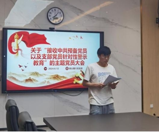 最后,陈爽总结指出,这次大会既是一次严肃的党内教育,也是一次难得的学习机会。通过党员警示教育,进一步增强了全体党员的凝聚力和战斗力。他希望全体党员,特别是拟加入支部的预备党员,要牢记党的宗旨,自信自强、守正创新,踔厉奋发、勇毅前行,为全面建设社会主义现代化强国、全面推进中华民族伟大复兴而团结奋斗。